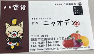 江南区にある果物屋さんと言えば「八百傳」さんなので行って来ました。「八百傳」さんの果物はいつ購入してもホント美味しいです。お店の方達も優しくて気軽に相談にのってくれます。 そして名刺を頂きました。「代表ニャオデン」(゚д゚)!なんと可愛いネーミング💛いやいや、うちのつよし君だって可愛いですよ💛ちょっぴり不愛想ですけど(笑)...